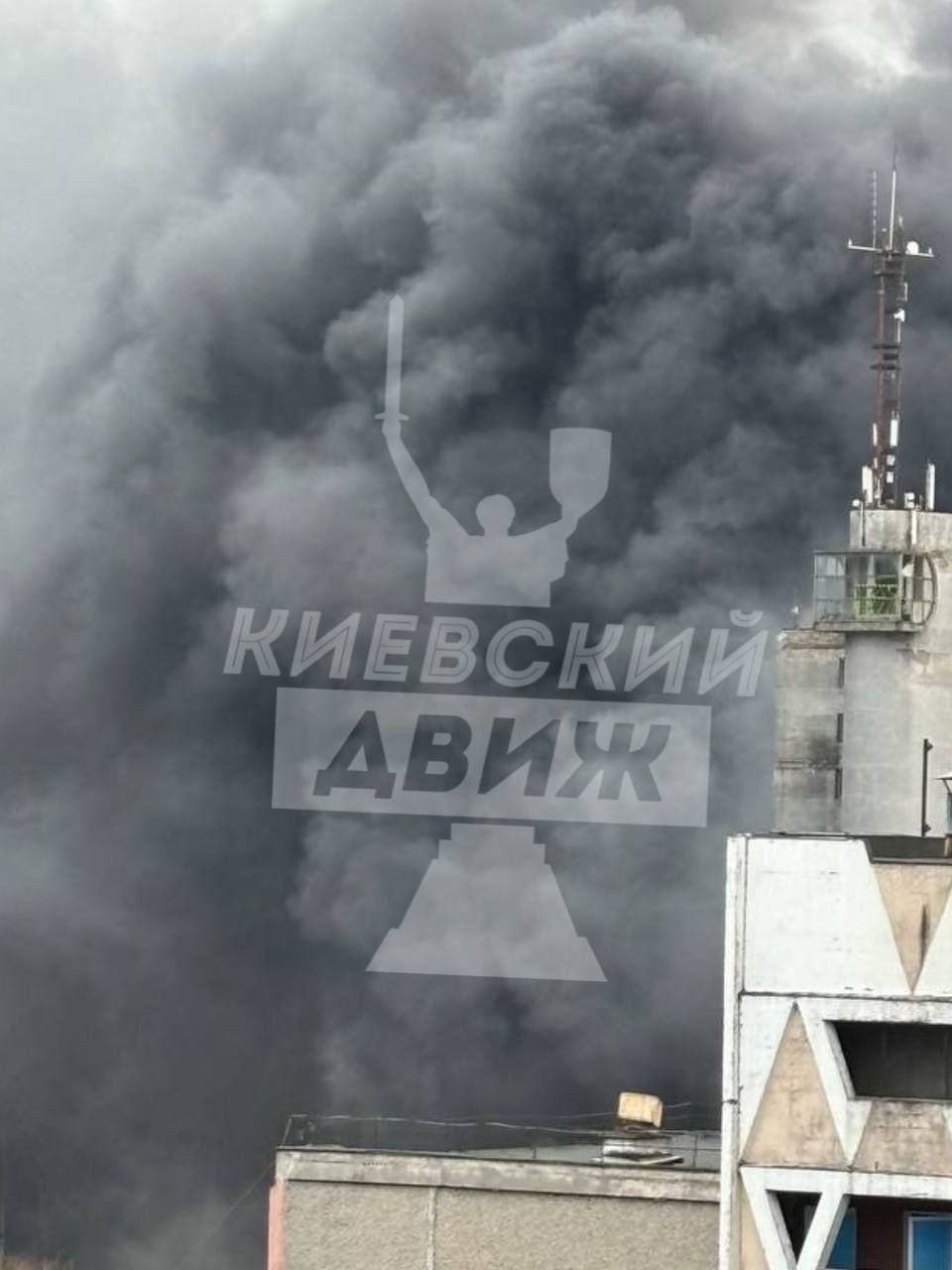 08.32 Масштабный пожар в Киеве - судя по всему на левом берегу - после прилёта.