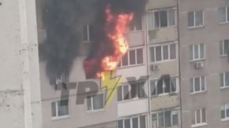 Паблики публикуют кадры горящей многоэтажки в Голосеевском районе Киева.