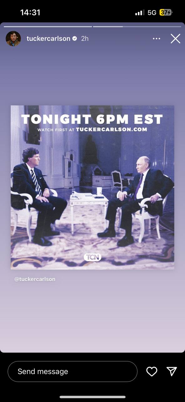 Напомним, это интервью Такер Карлсон анонсировал во вторник, 6 февраля. С того времени анонс просмотрел 101 млн пользователей соцсети Х (ранее Twitter).