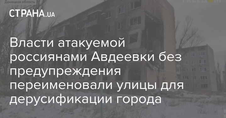 Улицы Авдеевки, в черте которой идут ожесточенные боевые действия, местные власти переименовали в рамках дерусификации и декоммунизации.