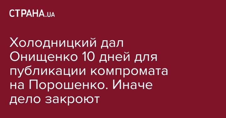 Холодницкий дал Онищенко 10 дней для публикации компромата на Порошенко. Иначе дело закроют