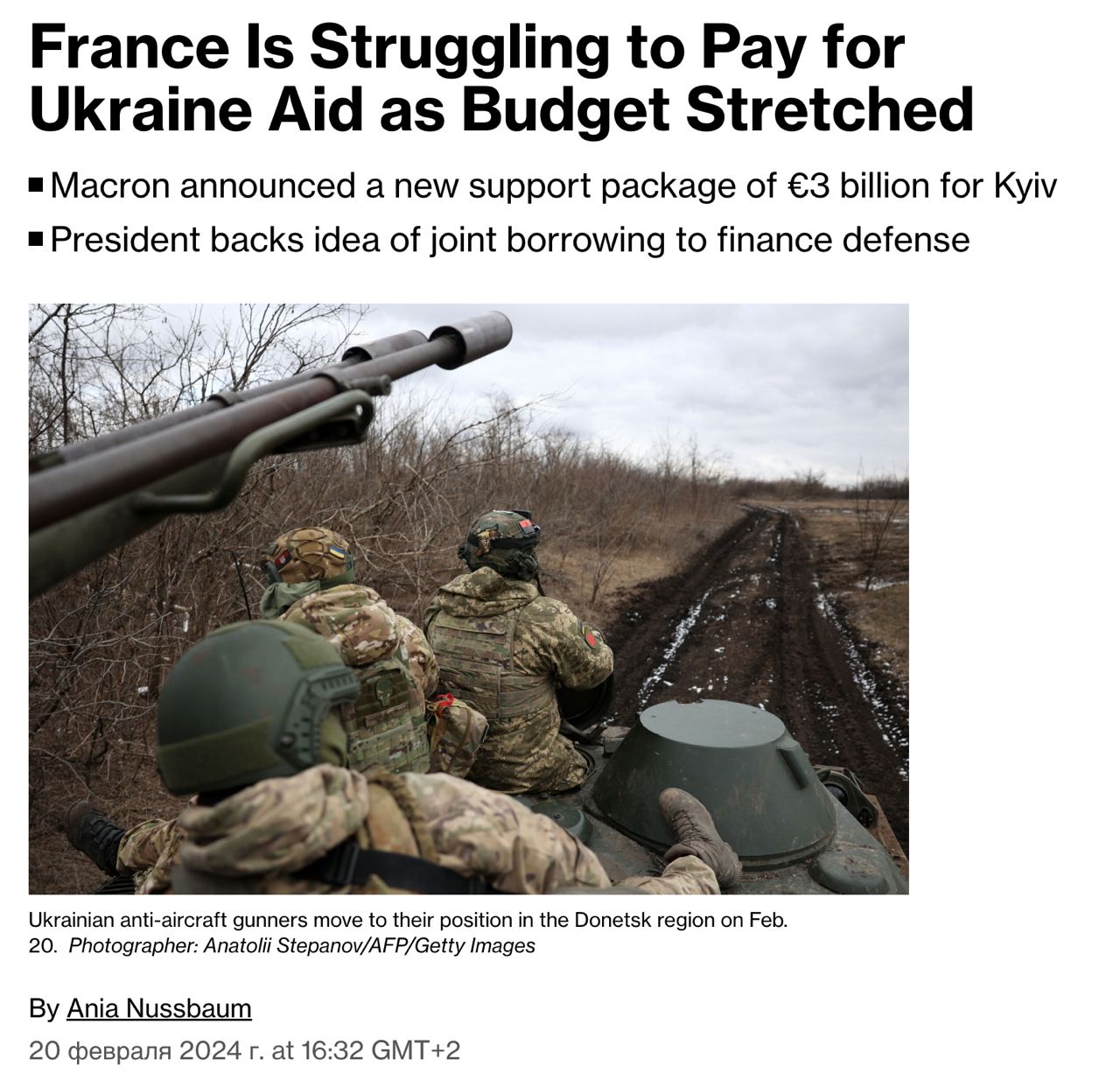 Франция испытывает трудности с оплатой обещанной Украине помощи на 3 млрд евро - Bloomberg