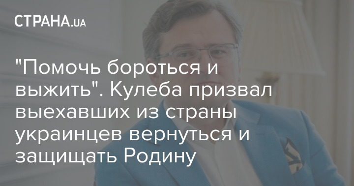 Министр иностранных дел Дмитрий Кулеба призвал украинцев, которые выехали из Украины во время войны, вернуться и помочь защищать Родину.