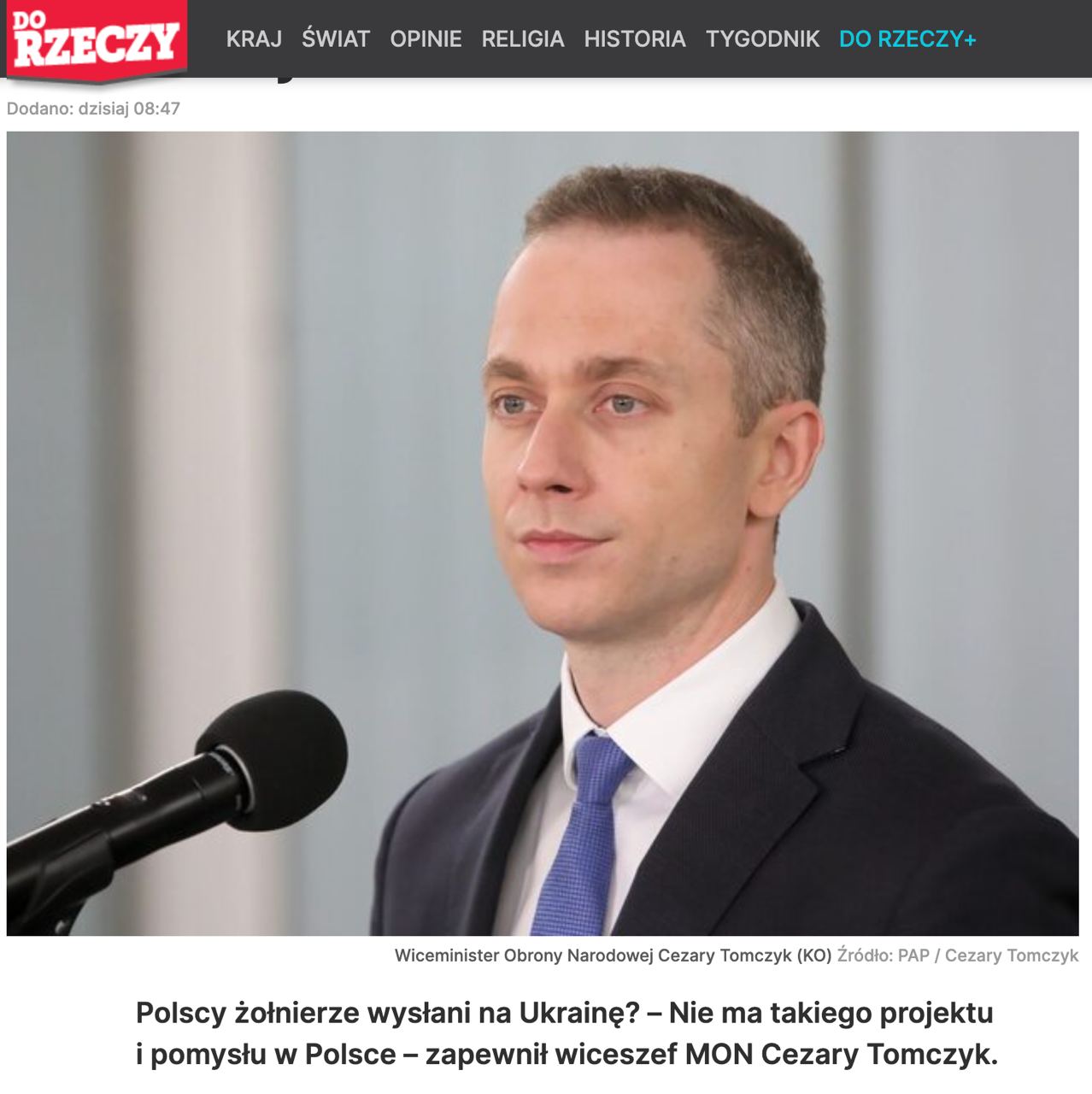 В то же время замминистра обороны Цезарий Томчик заявляет, что Варшава в любом случае не собирается направлять своих солдат в Украину.