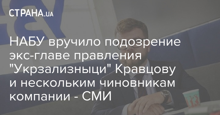 Национальное антикоррупционное бюро вручило подозрение бывшему главе правления "Укрзализныци" Евгению Кравцову и некоторым чиновникам компании по делу о завладении более 11 миллионами гривен средств компании.