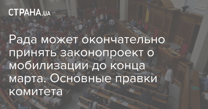 Верховная Рада рассмотрит законопроект об ужесточении мобилизации во втором чтении до конца марта.