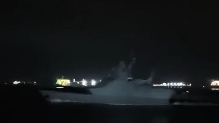 Появилось видео атаки морских дронов на российский корабль "Сергей Котов" в ночь на 5 марта.