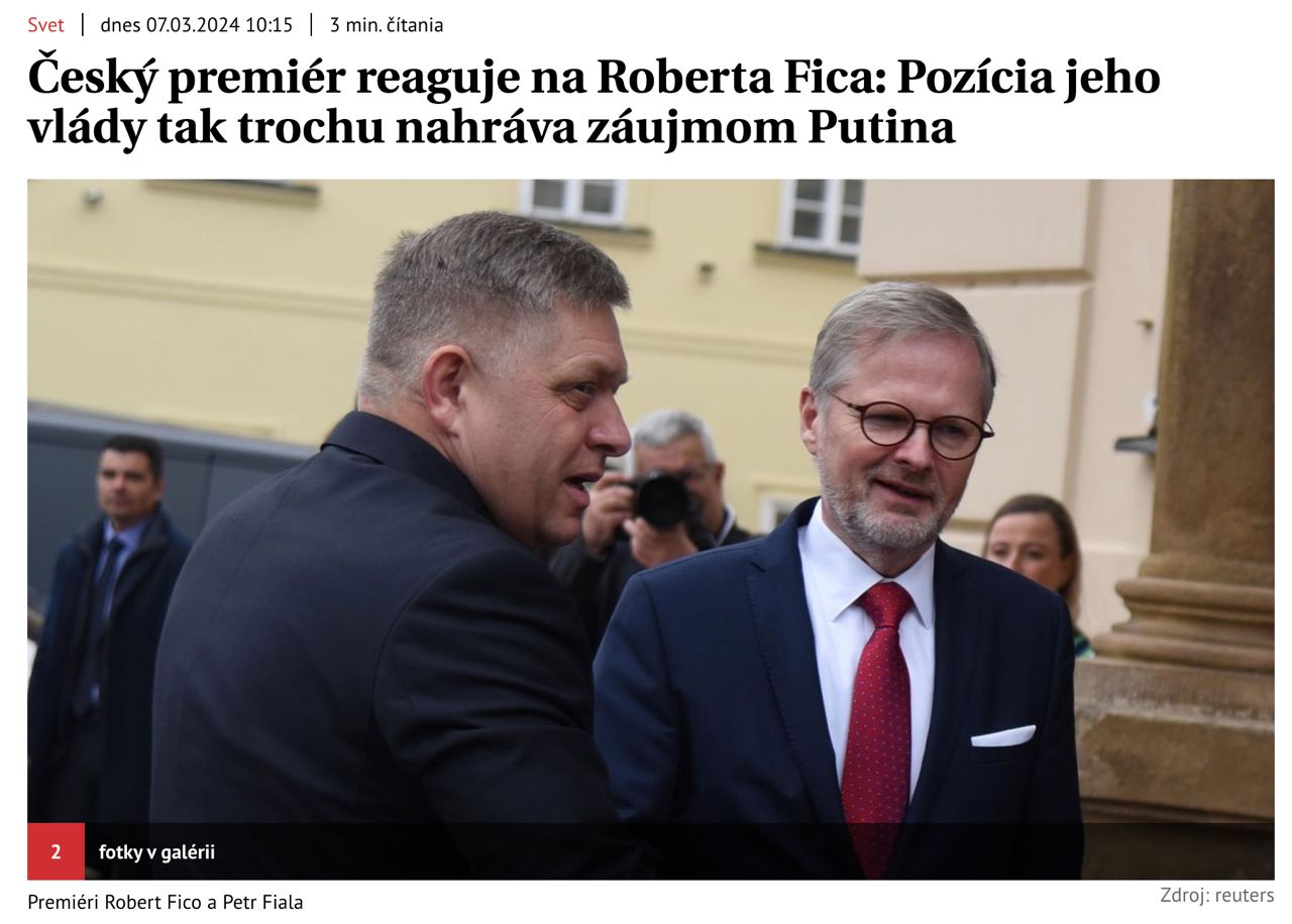 Чехия приостановила межправительственные консультации со Словакией, потому что позиция правительства премьер-министра Роберта Фицо "апеллирует к интересам Путина".