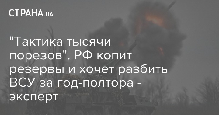 "Такое медленное удушение, которое еще называется тактика тысячи порезов, когда более сильный противник не спешит быстро нанести какие-то мощные удары, на которых он потеряет много сил и средств. А вынуждает не спеша, месяц за месяцем, тратить силы противника, чтобы довести его до состояния военного истощения", - добавил он, описывая нынешнюю тактику РФ.