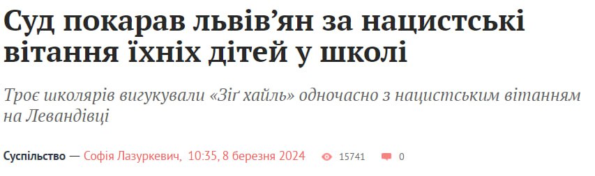 Как указано в постановлении суда, случай произошел 5 февраля 2024 года в помещении львовского лицея "Гроно" в микрорайоне Левандовка, где трое несовершеннолетних парней в помещении лицея выкрикивали "Зиг хайль" одновременно с нацистским приветствием.