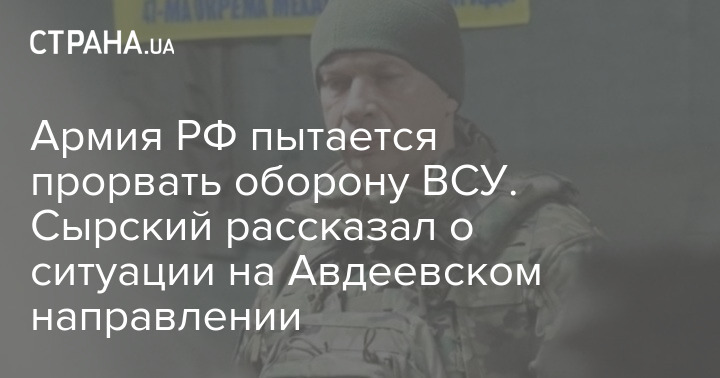 Армия РФ пытается прорвать оборону ВСУ. Сырский рассказал о ситуации на Авдеевском направлении