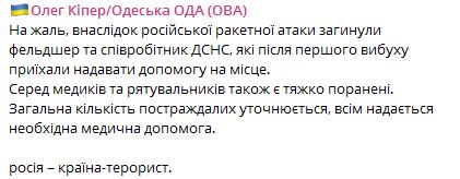 Напомним, что сегодня днем Одесса подверглась очередной ракетной атаке РФ. Паблики писали о тридцати пострадавших.
