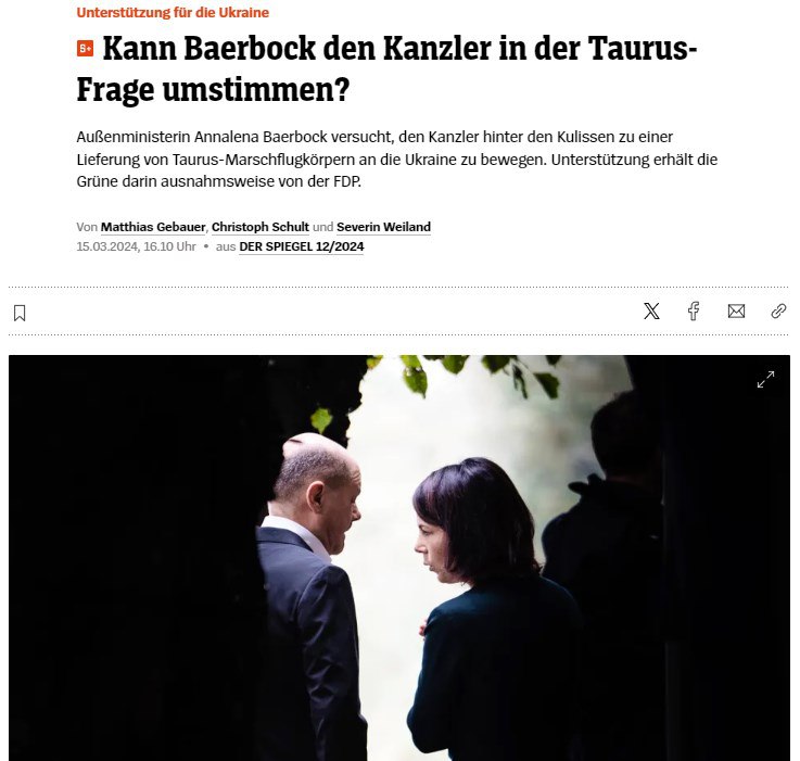По информации издания, один из вариантов Бербок выглядит так: немцы передают Taurus британцам, которые передают их украинцам, но сохраняют контроль над размещением и целями. Пока что министру иностранных дел не удалось добиться успеха у Шольца.