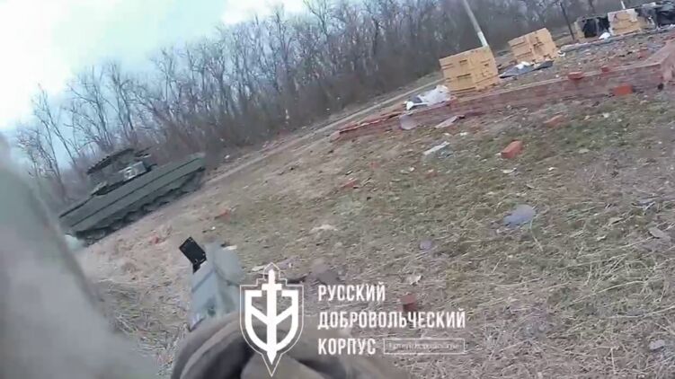 Воюющий на стороне Украины "Русский добровольческий корпус" 19 марта опубликовал видео, как заявляется, из Козинки Белгородской области. На кадрах боец РДК стреляет по тяжелой бронетехнике.