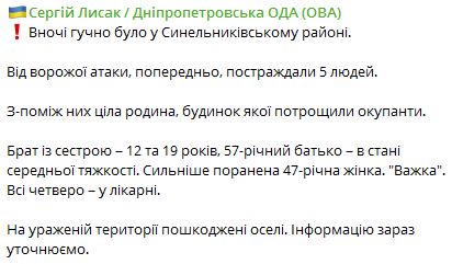 07.35 Ночью РФ ударила по Синельниковскому району Днепропетровской области.