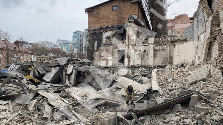 Также известно, что в Печерском районе Киева ракета разрушила учебное заведение, под завалами могут быть люди.