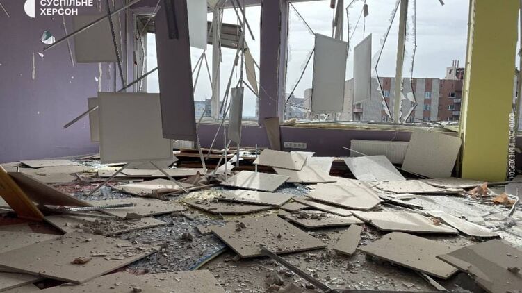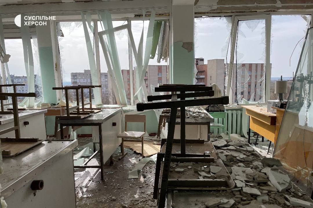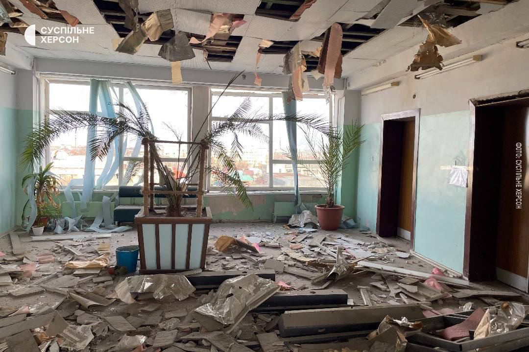 "Огромная дыра в стене, разбитые аудитории, выбитые стекла. Так выглядит сейчас одно из высших учебных заведений Херсона", - написал глава ОВА.