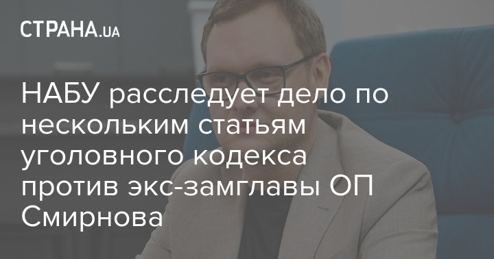 НАБУ расследует дело по нескольким статьям уголовного кодекса против экс-замглавы ОП Смирнова