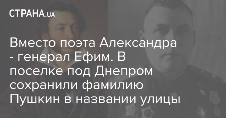 Вместо поэта Александра - генерал Ефим. В поселке под Днепром сохранили фамилию Пушкин в названии улицы