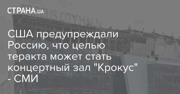 США предупреждали Россию, что конкретно концертный зал "Крокус Сити Холл" под Москвой может стать целью теракта.