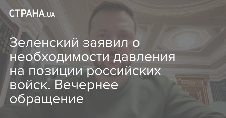 Зеленский заявил о необходимости давления на позиции российских войск. Вечернее обращение