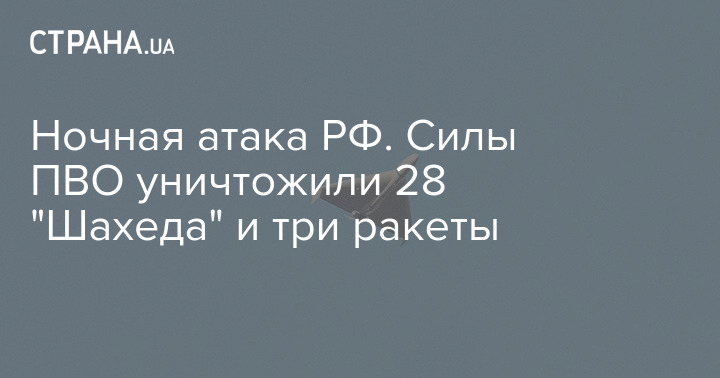 "В результате противовоздушного боя Силами обороны Украины сбиты две крылатые ракеты, крылатая ракета "Калибр" и 28 ударных БпЛА", - говорится в сообщении.