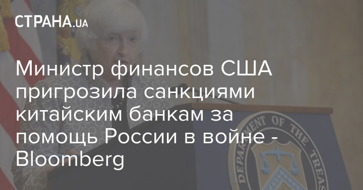 Министр финансов США пригрозила санкциями китайским банкам за помощь России в войне - Bloomberg