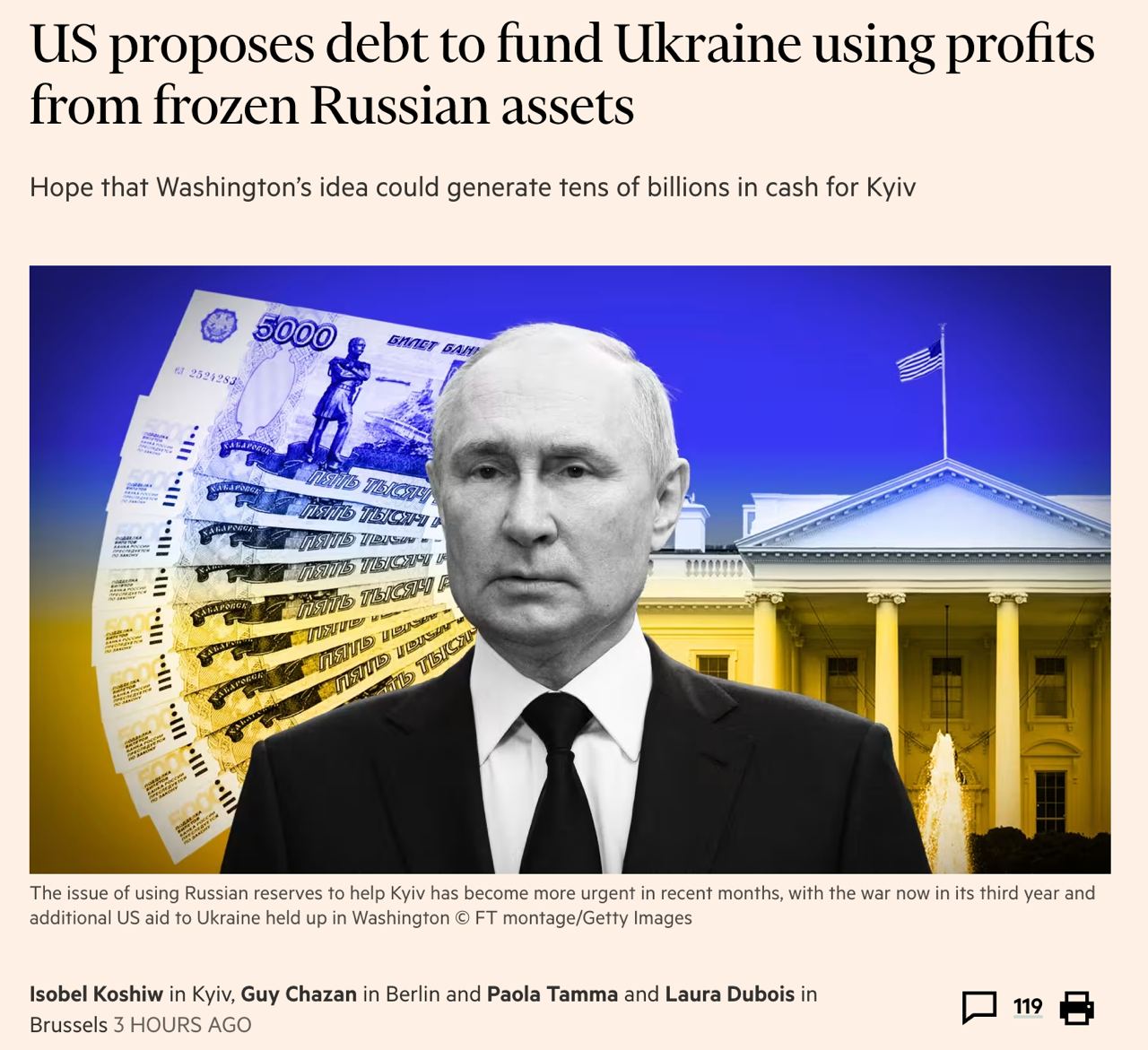 США предлагают привлечь десятки миллиардов евро для Украины, взяв их в долг под залог от прибыли активов РФ - FT