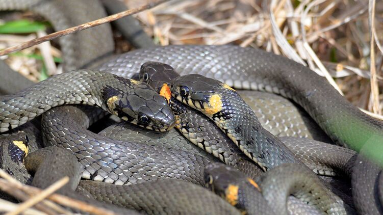 Также в заповеднике показали фото ужей. Сейчас у них брачный период. Они собираются вместе и извиваются в брачном клубке.