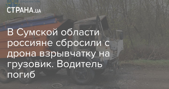 В Сумской области россияне сбросили с дрона взрывчатку на грузовик. Водитель погиб