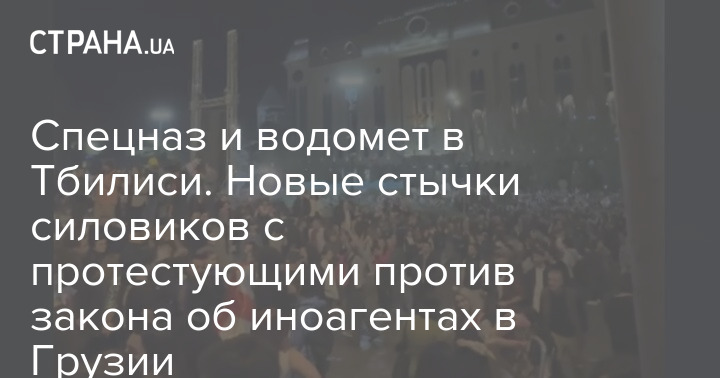Парламент Грузии продолжает рассмотрение законопроекта об иноагентах, что вызвало протесты в Тбилиси. К митингующим прибыл спецназ и подъехал водомет.
