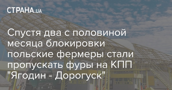 "Движение грузовиков через пункт пропуска "Ягодин – Дорогуск" восстановлено. По информации от Пограничной стражи Республики Польша, сегодня в 13:00 завершилась акция протеста польских фермеров перед пунктом пропуска "Дорогуск – Ягодин", которая длилась с 9 февраля.
