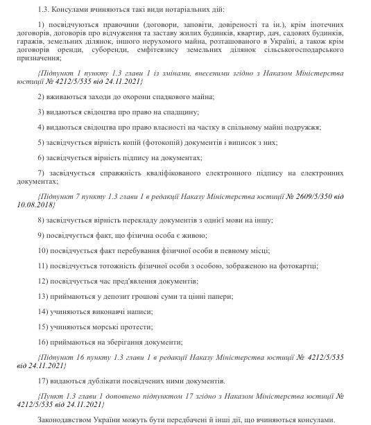 Также консульства совершают нотариальные действия (полный перечень есть в приказе Минюста о порядке совершения нотариальных действий). В частности: