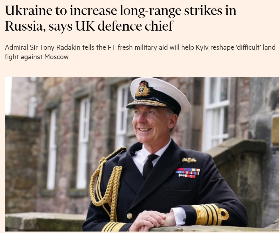 Об этом заявил глава британских вооруженных сил Тони Радакин в интервью Financial Times.