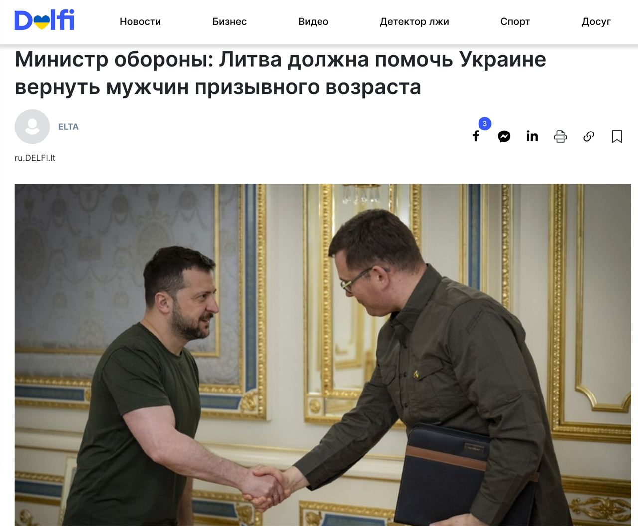 Министр обороны Лауринас Кащюнас заявил, что Литва может ввести ограничения в отношении украинских мужчин для их возврата на родину.