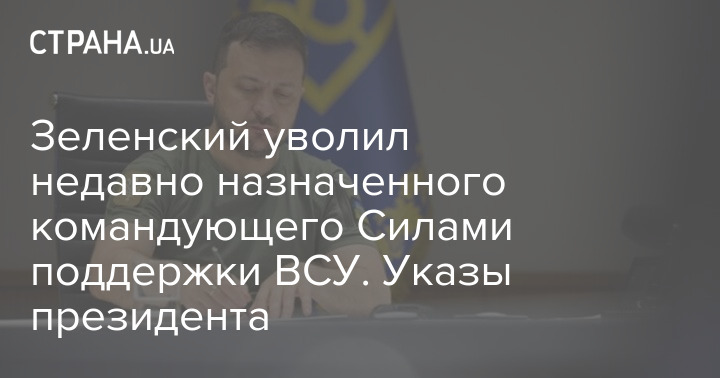 Зеленский уволил недавно назначенного командующего Силами поддержки ВСУ. Указы президента