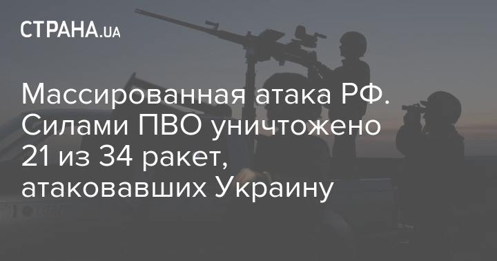 Сегодня ночью во время массированной атаки РФ силами ПВО было уничтожено 21 из 34 ракет, атаковавших Украину.
