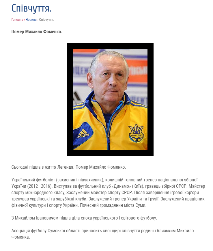 Умер бывший тренер сборной Украины по футболу Михаил Фоменко