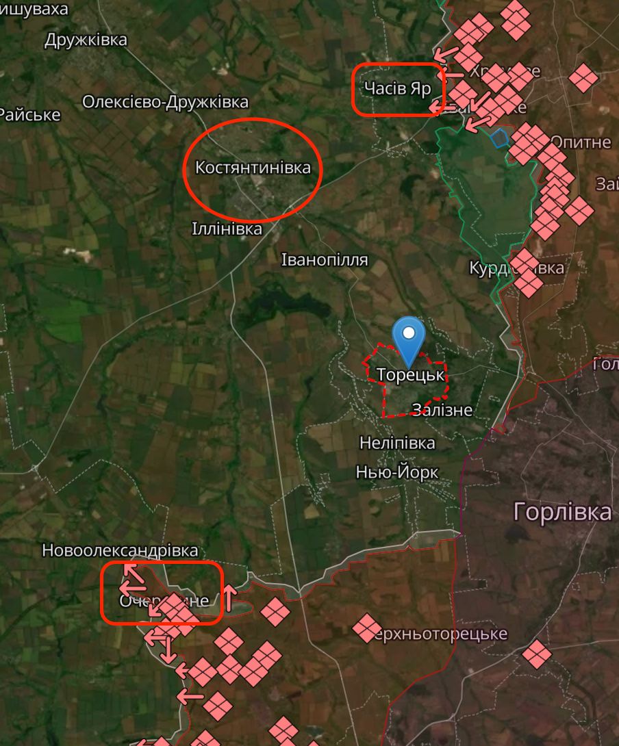Эти фланги формируются на севере (Часов Яр) и юге (Очеретино).