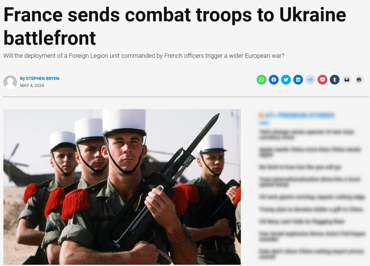 Бывший чиновник Пентагона, военный эксперт Стивен Брайен утверждает, что Франция тайно направила своих военных в Украину.