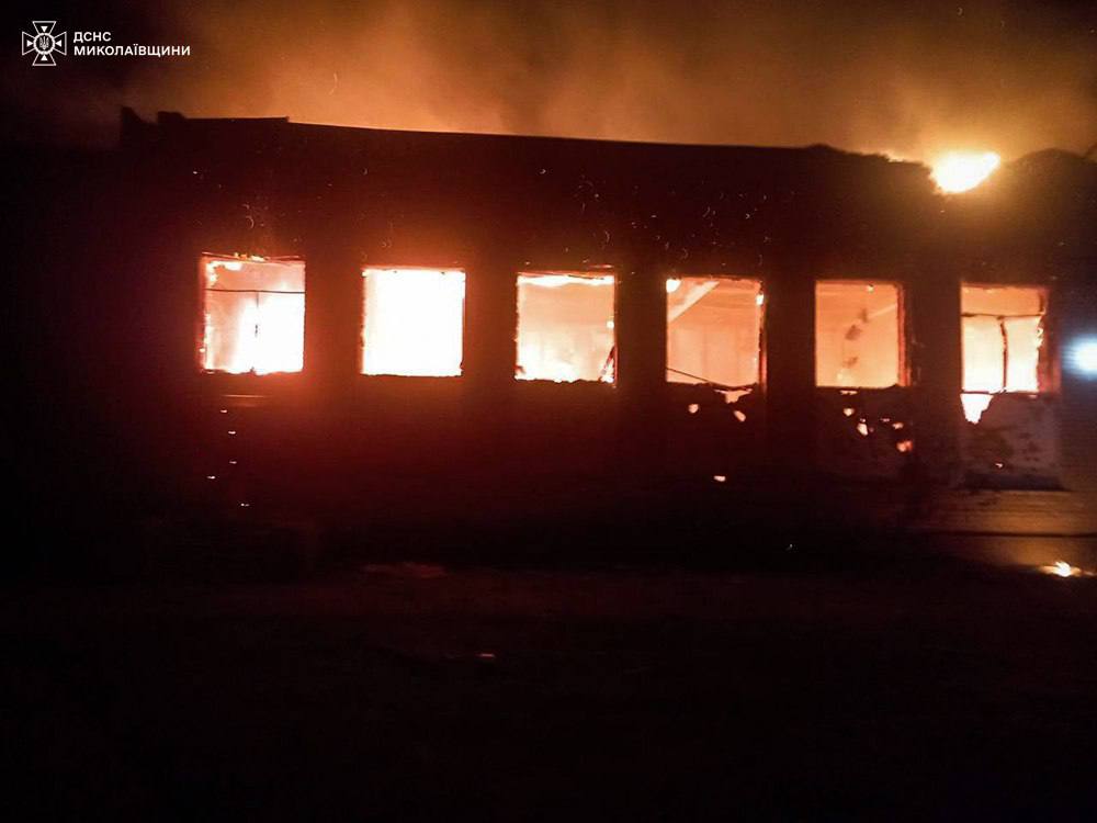 08.57 В Николаевской области дрон попал в бывший дом культуры Первомайской громады. Сейчас возгорание ликвидировано.