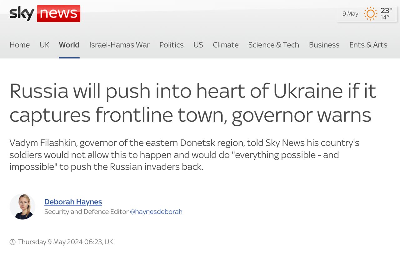 09.40 В случае захвата Донбасса армия РФ "прорвется в самое сердце Украины", заявил донецкий губернатор Филашкин в интервью Sky News.