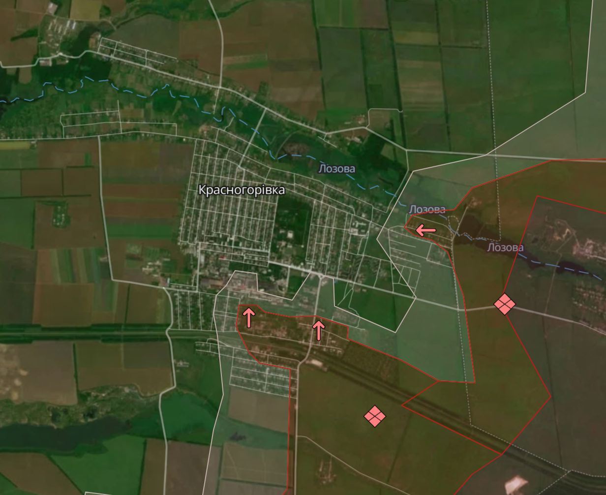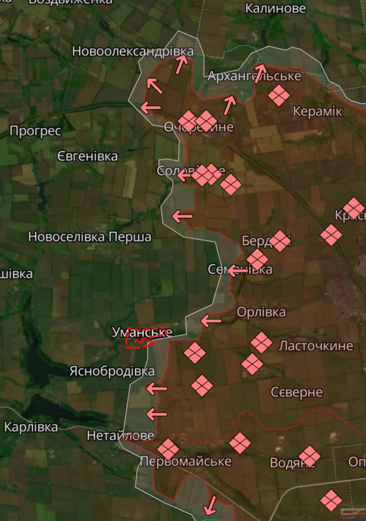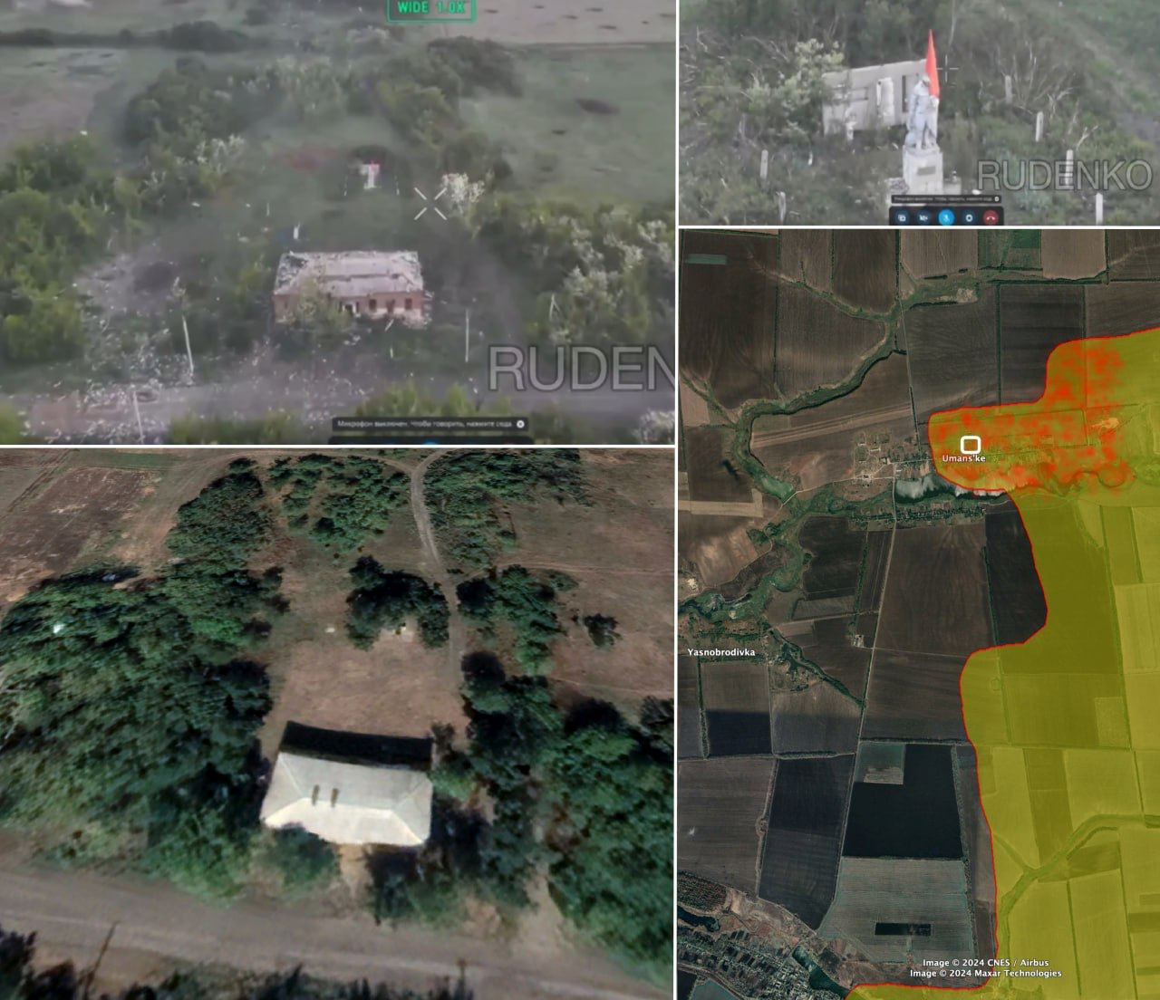 "Южная и западная части села, судя по всему, пока остаются под контролем украинской армии. Часть кадров свидетельствует об ожесточённых атаках на украинские окопы к востоку от Уманского и отход украинских войск на запад по северной стороне озера близ села", - пишет Рёпке.