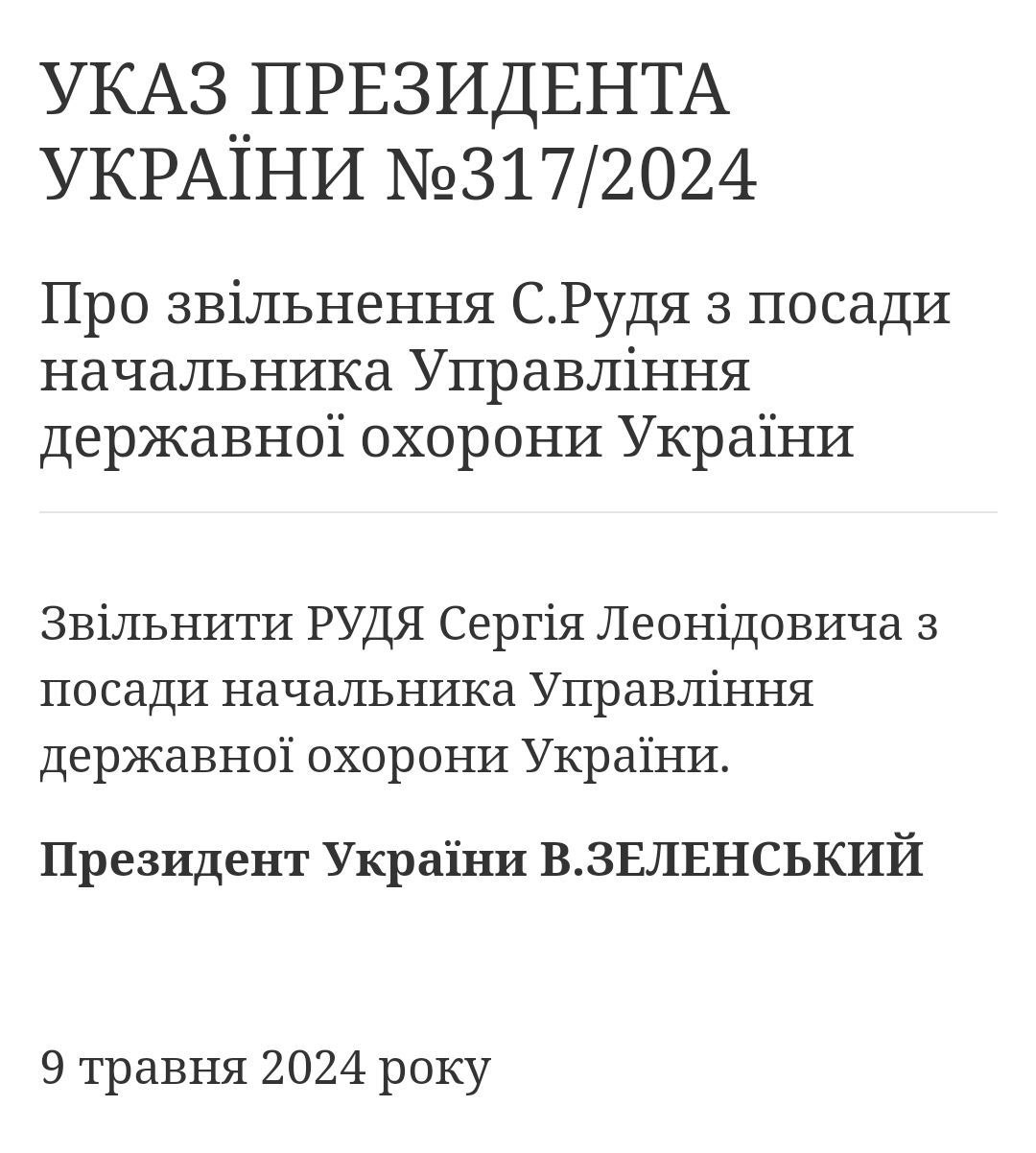 20.00 Сергей Рудь уволен с должности начальника управления Госохраны.