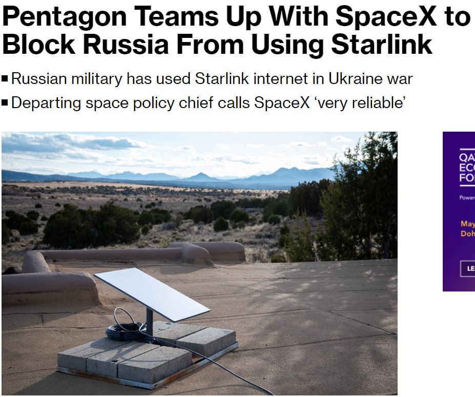 21.56 Пентагон вместе с SpaceX заблокировали несанкционированное использование россиянами интернет-терминалов Starlink на поле боя.