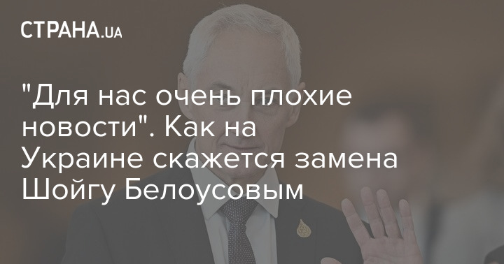 Назначение первого вице-премьера Андрея Белоусова министром обороны РФ - это "очень плохие новости" для Украины.