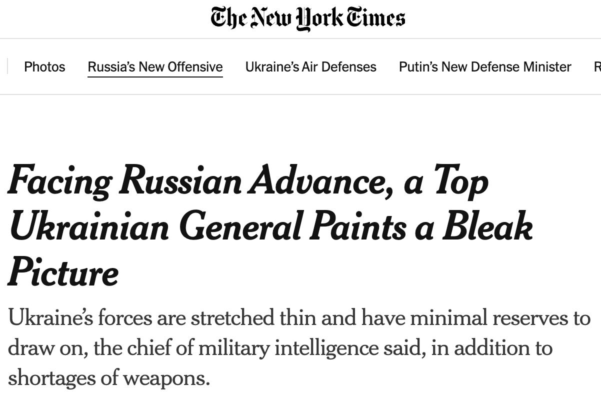 По мнению Politico, под Харьковом началось то самое наступление РФ, которое ожидалось в мае-июне и начало которого могло быть ускоренно, пока Украина не получила всю западную помощь.