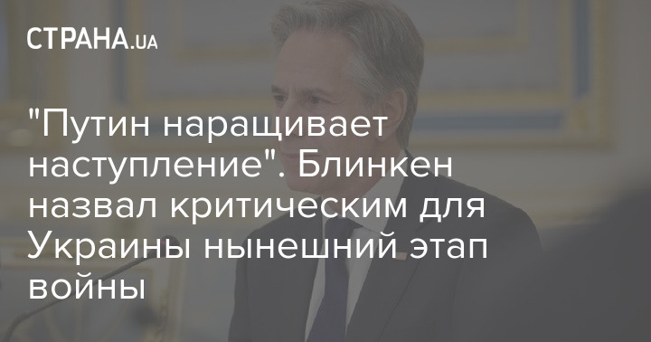 Госсекретарь США Энтони Блинкен назвал критическим для Украины нынешний этап войны.