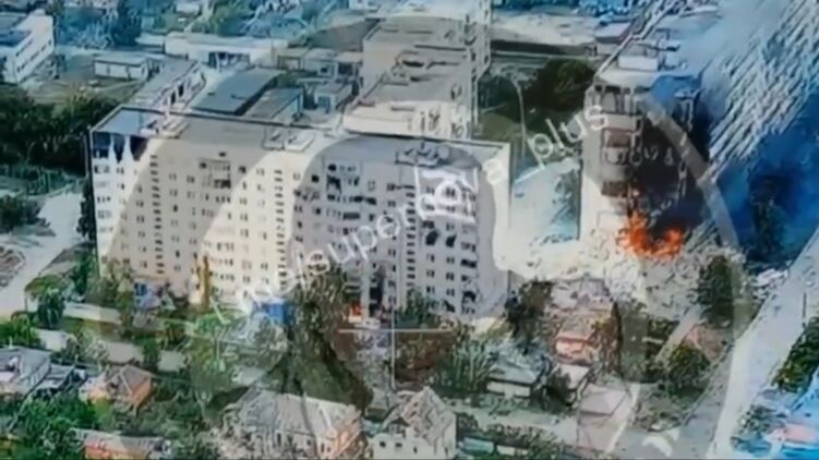Видео разрушений высотных жилых домов на центральной улице города публикуют телеграм-каналы.