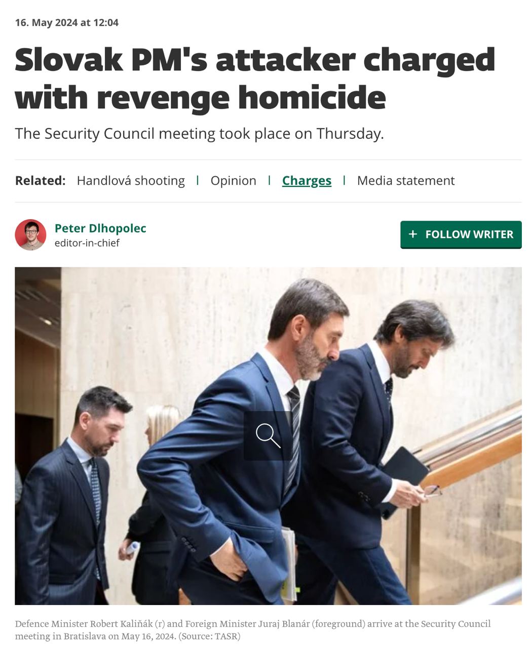 Также выяснилось, что Чинтула был членом организации, которая участвовала в протестах против политики Фицо и его правительства 24 апреля этого года.